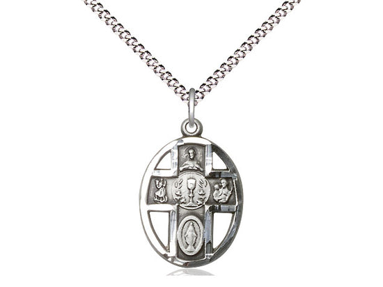 Oval 5 Way Sterling Silver medal with Chalice center.