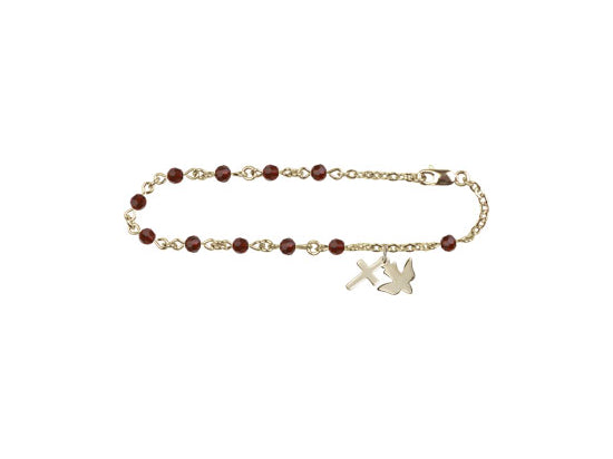 7 1/4 Silver Plate Confirmation Rosary Bracelet with 4mm Swarovski Beads