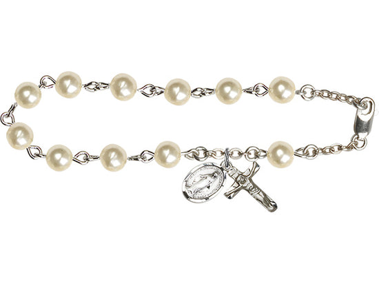 First Holy Communion Girls Silver Pearl Rosary Bracelet