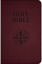 This popular RSV-CE edition comes in a beautiful burgandy premium ultrasoft cover. Contains embossed emblems, gilt edges, ribbon marker, full color maps and presentation page. A perfect gift for any occasion, especially graduations, RCIA, birthdays.